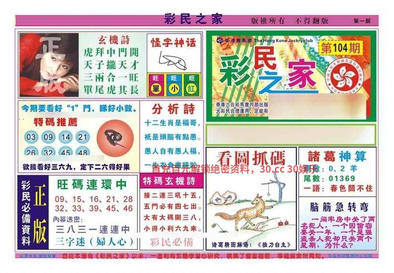 107期:飞雪七肖必中 107期:平特一肖王造福